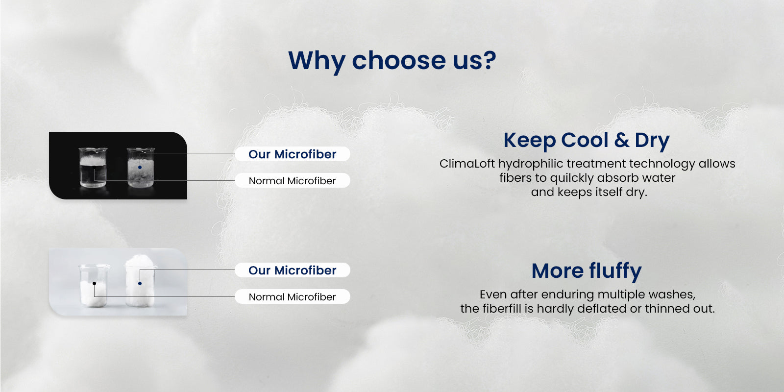 - Flauschig & Leicht : Die Mikrofasermischung fühlt sich an wie eine Wolke – leicht und bauschig. Sie absorbiert Feuchtigkeit und lässt Luft durch, sodass Sie sich zu jeder Jahreszeit nie stickig fühlen.